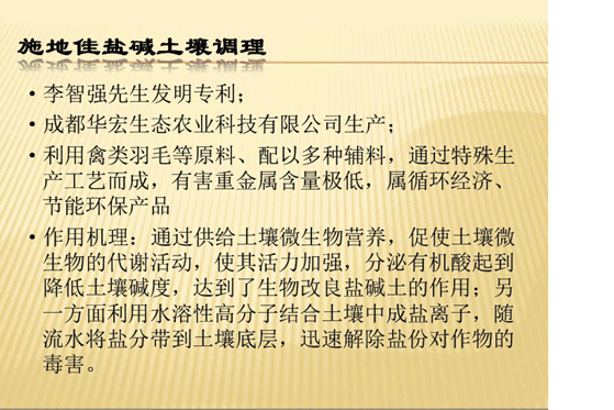 公司總農(nóng)藝師劉軍先生2013年11月29日在農(nóng)業(yè)部土壤調(diào)理產(chǎn)業(yè)研討會(huì)上的演講摘要 2013-12-18 華宏生物 公司總農(nóng)藝師劉軍先生 2013年11月29日在農(nóng)業(yè)部土壤調(diào)理產(chǎn)業(yè)研討會(huì)上的演講摘要