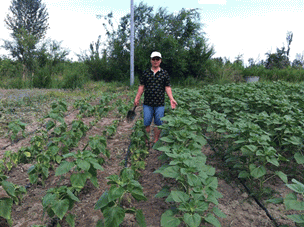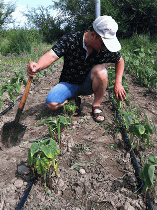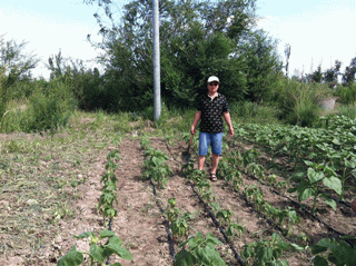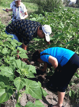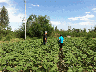 圖7:仔細觀察列當(dāng)危害 圖8:劉總在對照組地里思考著