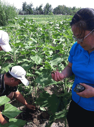 2013年,新疆科技特派員在福??h食葵列當(dāng)防治成功