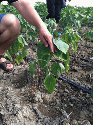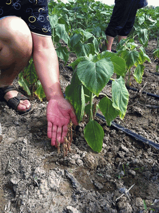 圖1: 食葵列當(dāng)寄生在向日葵植株上 圖2 :仔細觀察產(chǎn)品對列當(dāng)?shù)姆乐?/span>效果