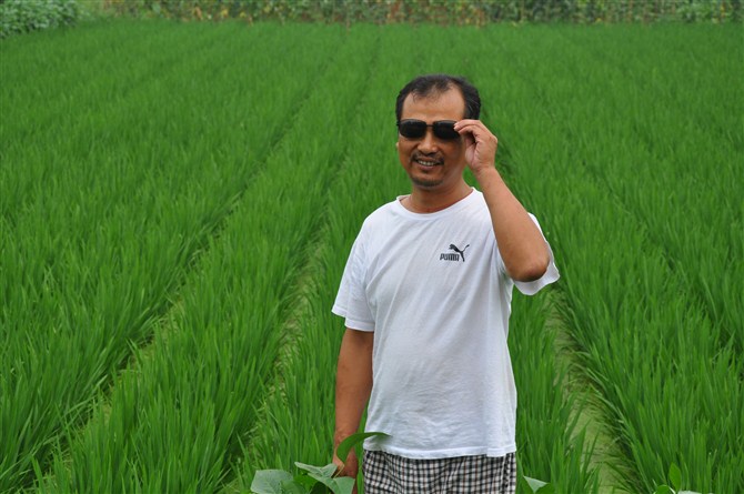 圖2:農(nóng)戶看見自己家的秧苗長得如此茂盛,心里樂滋滋的