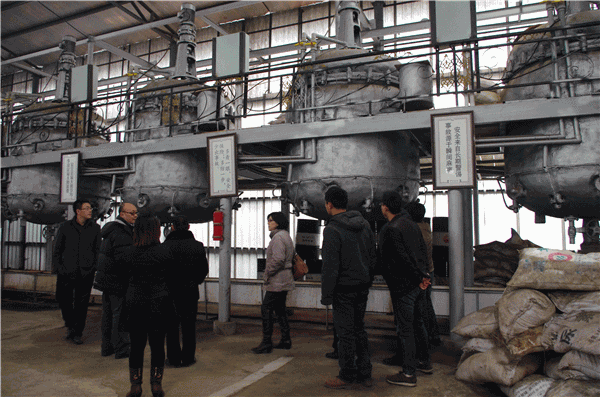 圖7:與會(huì)者在參觀華宏農(nóng)科的改良劑生產(chǎn)車間