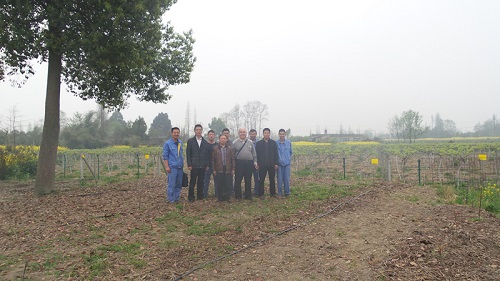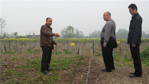 圖1:2014年4月29日下午,仝總一到都江堰市,在李總的陪同下首先參觀了我公司的獼猴桃種植園