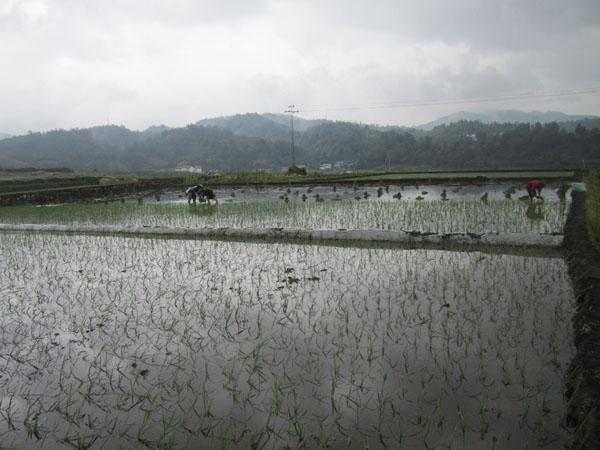 龍陵縣土肥站續(xù)農(nóng)業(yè)部2013年下達(dá)土壤調(diào)理劑“施地佳”在水稻上的2處理3重復(fù)試驗(yàn)效果基礎(chǔ)上,我站與龍新鄉(xiāng)農(nóng)科站在勐冒村磚廠背后舉辦2014年水稻施用“施地佳”應(yīng)用效果示范項(xiàng)目工作,示范設(shè)2個(gè)處理(處理1:習(xí)慣施肥;處理2習(xí)慣施肥+施地佳土壤調(diào)理劑),不設(shè)重復(fù),處理間用薄膜隔埂,各處理單排單灌,避免串排灌,其他農(nóng)事活動(dòng)一致。示范田于6月4日取土后并畝用“施地佳”2千克拌20倍細(xì)土均勻撒施地表后翻犁耙勻,6月5日示范田移栽工作結(jié)束并進(jìn)行多點(diǎn)定苗,便于以后秧苗動(dòng)態(tài)觀察記載工作。
