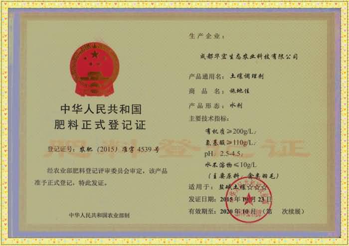 熱烈祝賀我公司“施地佳”土壤調(diào)理劑獲準(zhǔn)農(nóng)業(yè)部正式登記