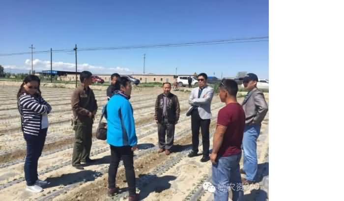圖片說明2:89團領導親自過問種植戶情況,種植戶匯報了這兩年使用情況,效果很好。