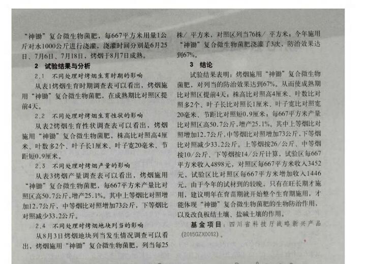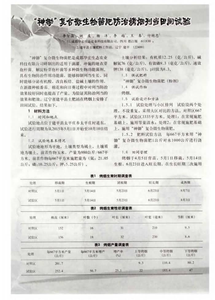 《新農(nóng)業(yè)》2016年 第7期“神鋤”復合微生物菌肥防治烤煙列當田間試驗