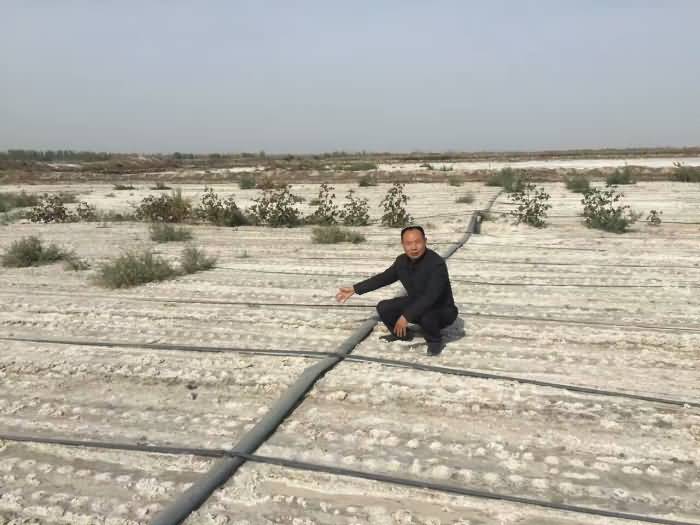 據(jù)了解,新疆溫宿縣古勒阿瓦提鄉(xiāng)三萬畝荒地自2005年起由當?shù)氐囊晃痪S吾爾族老板承包,之后的十一年時間里,該老板通過轉租等方式嘗試對鹽堿地進行改良,然而卻一直未能改良成功。正當諸多的承包商面對這么大面積的荒地一籌莫展時,轉機卻正在悄然來臨。2015年,受承包鹽堿地的一位李老板的邀請,成都華宏生物科技有限公司在李老板所承包的1000畝鹽堿地中的200畝中進行改良試驗。