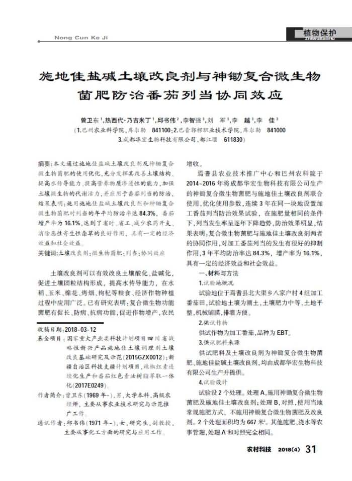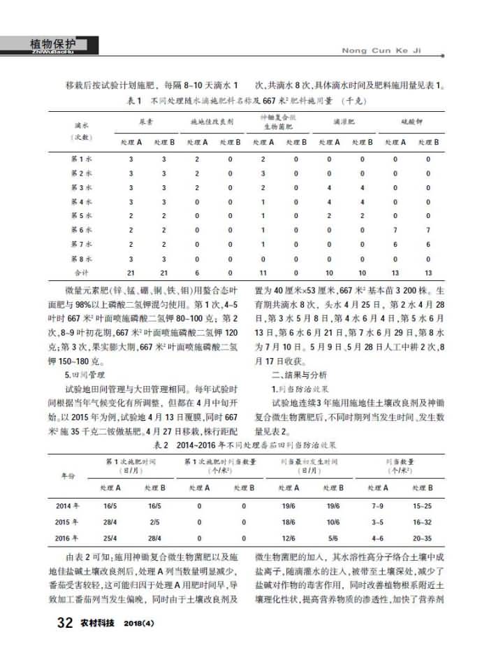 施地佳鹽堿土壤改良劑與神鋤復合微生物菌肥防治番茄列當協(xié)同效應(yīng)