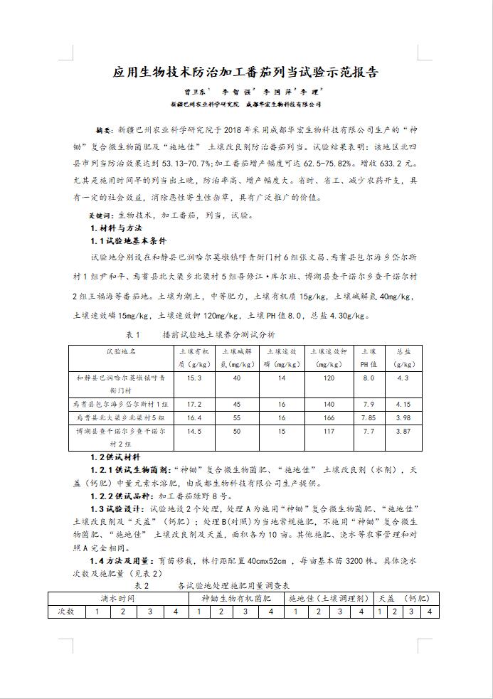 應(yīng)用生物技術(shù)防治加工番茄列當試驗示范報告