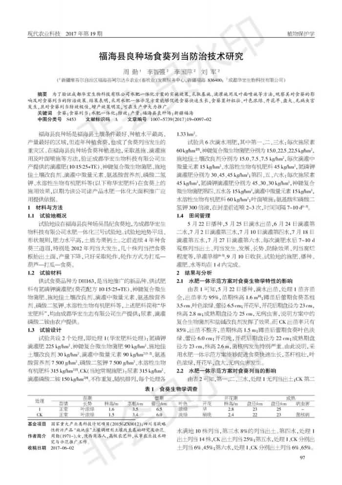 福??h良種場食葵列當(dāng)防治技術(shù)研究