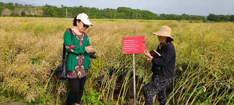 2020-2022年與江西九江市農(nóng)業(yè)科學(xué)院合作實(shí)施我們的方案常規(guī)施肥+土壤修復(fù)菌劑+秸稈還田微生物腐熟劑應(yīng)用油菜防治根腫病。圖為 公司聘請(qǐng)專家李國(guó)萍研究員與九江農(nóng)科院 植保所所長(zhǎng)江滿霞在示范田觀察